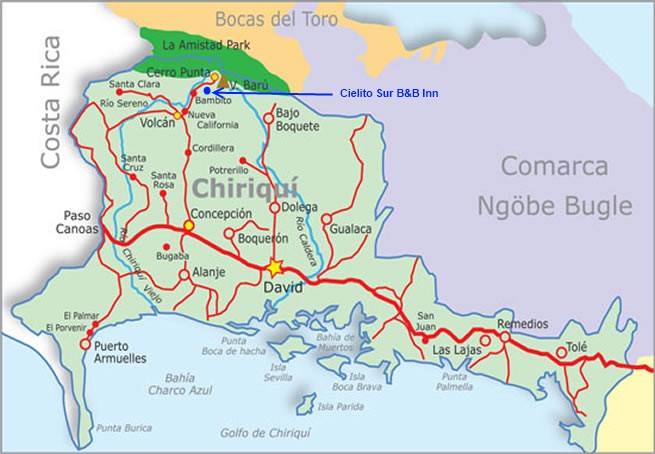 | Driving from the Enrique Malek Airport in David: Click here for a map of David, Chiriqui from Wikimap Click here for a map of Volcan, Chiriqui from Wikimap